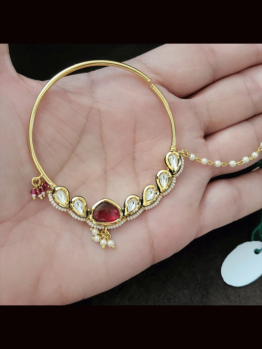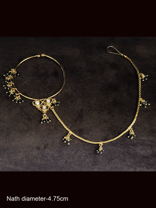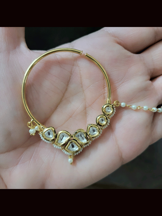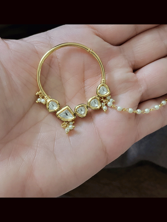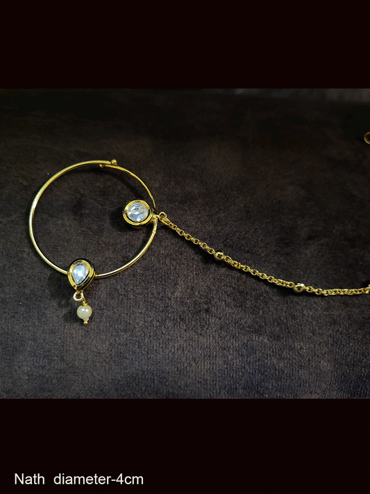 4.75 cm diameter ring Nath with polki and pearly hangings