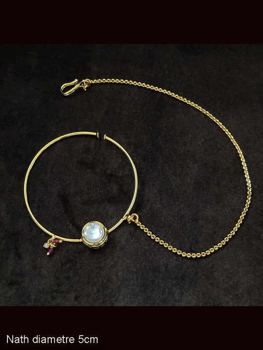5cm diameter single round kundan in ring nath with coloured bead detailing