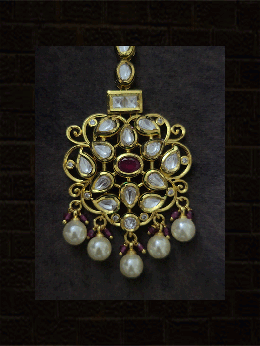 Kundan jadau semi circular maangtika with pearl detailing