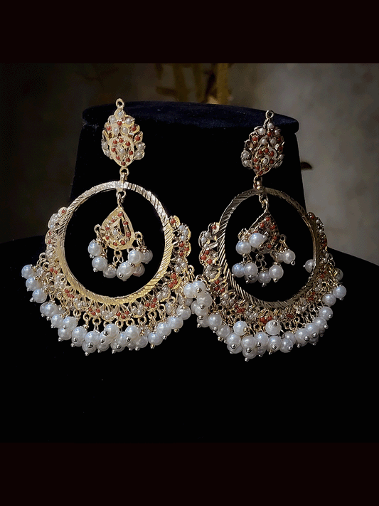 12cm long dual polish kundan and coloured stones pirohi work chandbali earrings