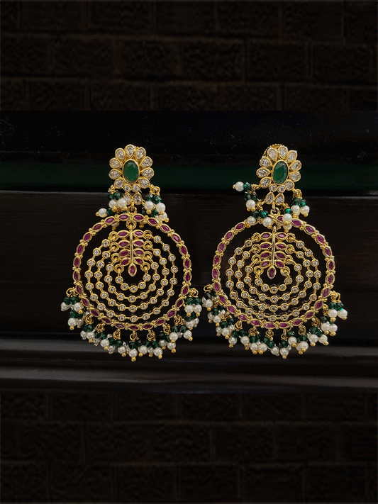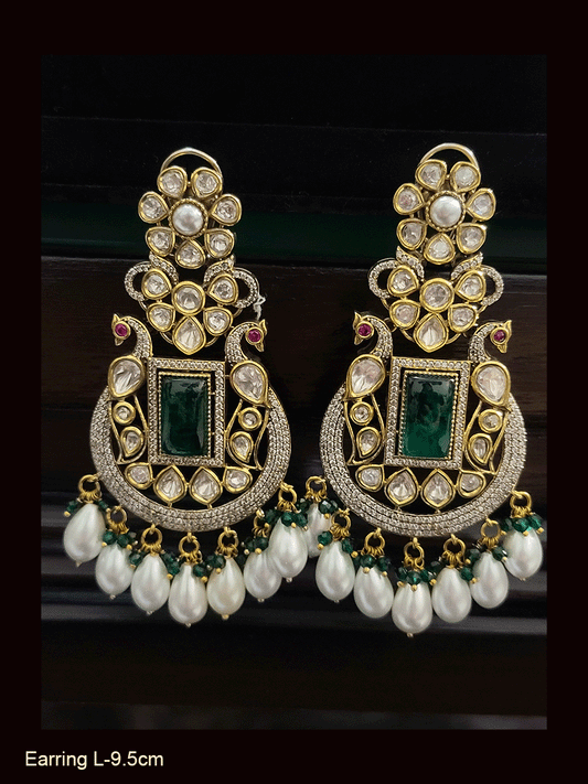 Peacock top and peacock design domb AD,ruby and green stones jhoomkies