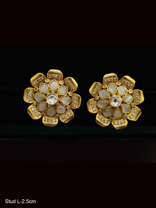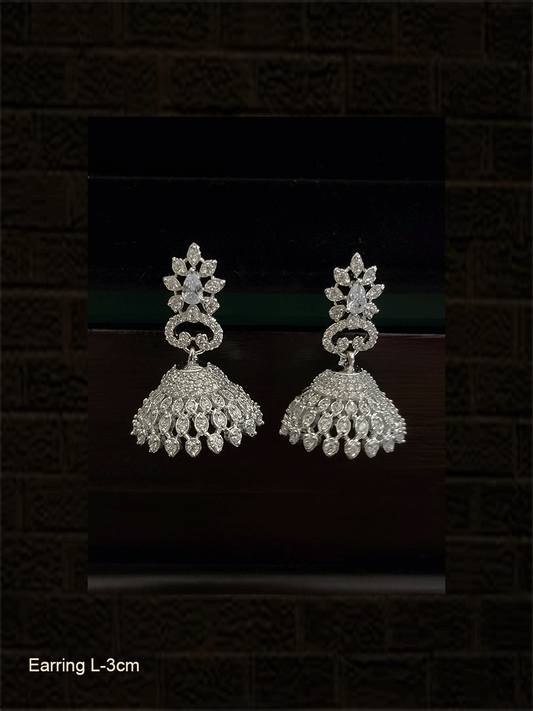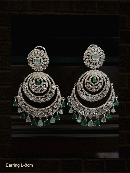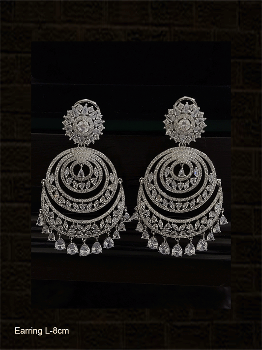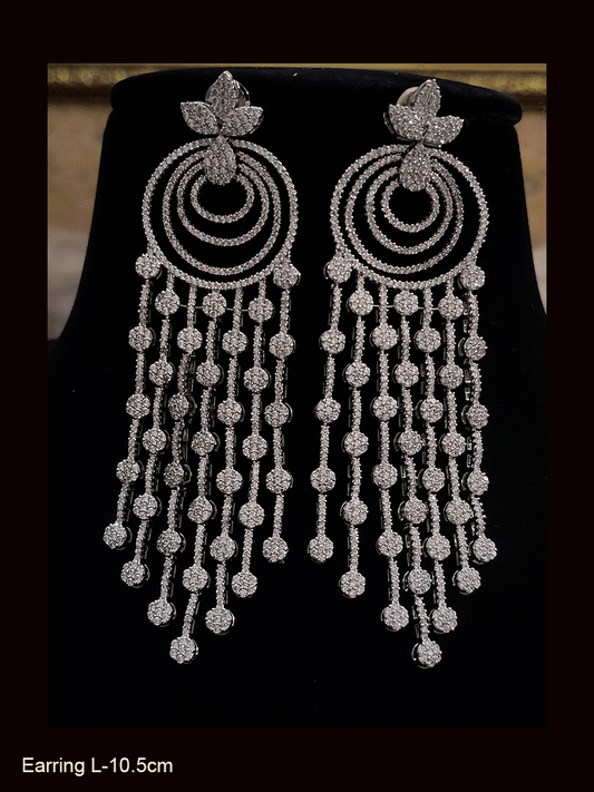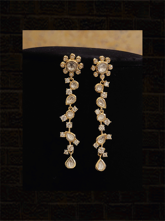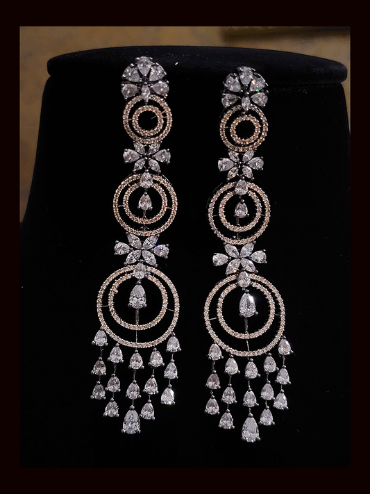 Flower top chandbali design long AD earrings with tear drop shaped white stones