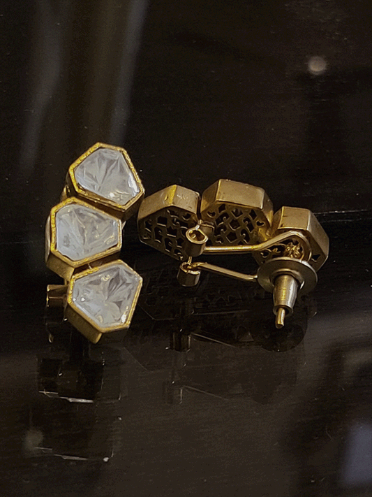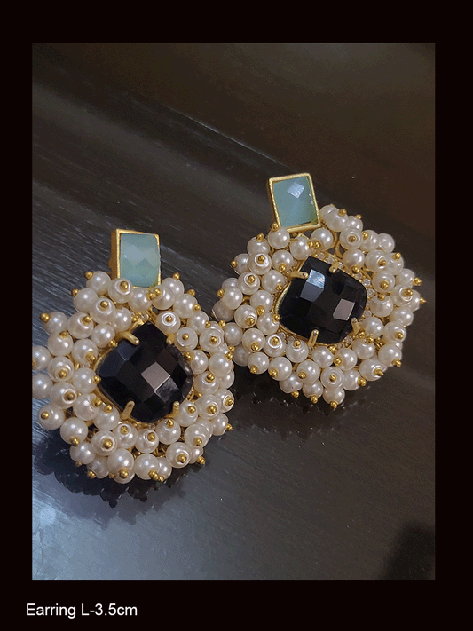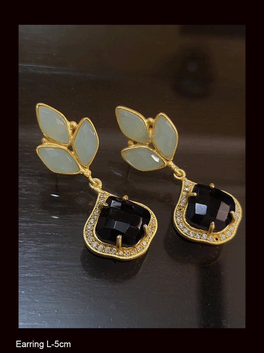 Natural stones three leaf top earring with zircon outline natural stone drop