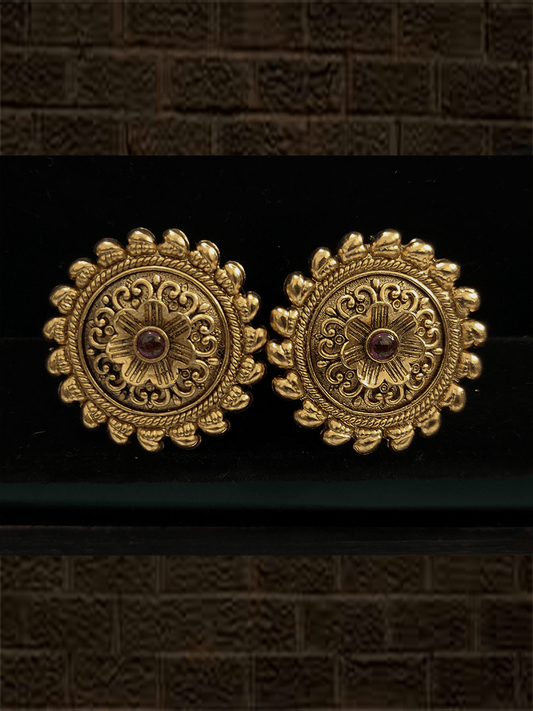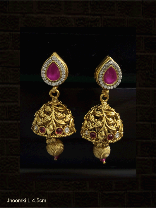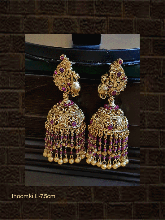Ganpatiji face on flower top jhoomki with Kalash design on domb