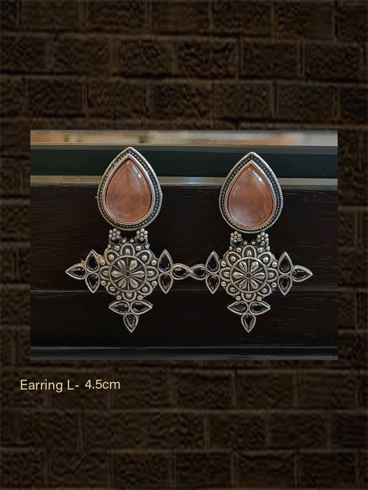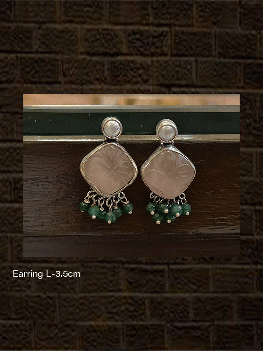 Leaf in square shaped german silver earrings with stones and pearl drops