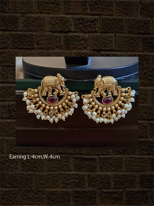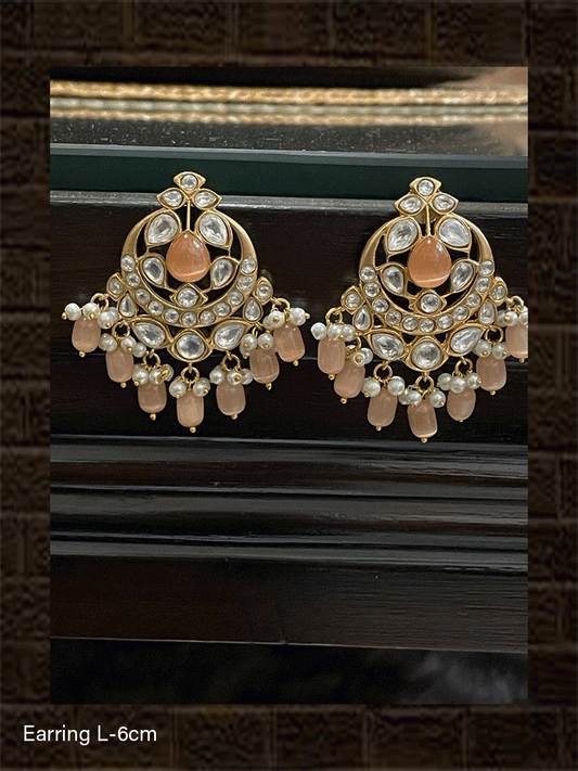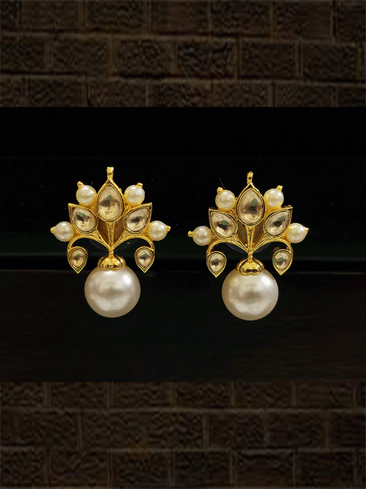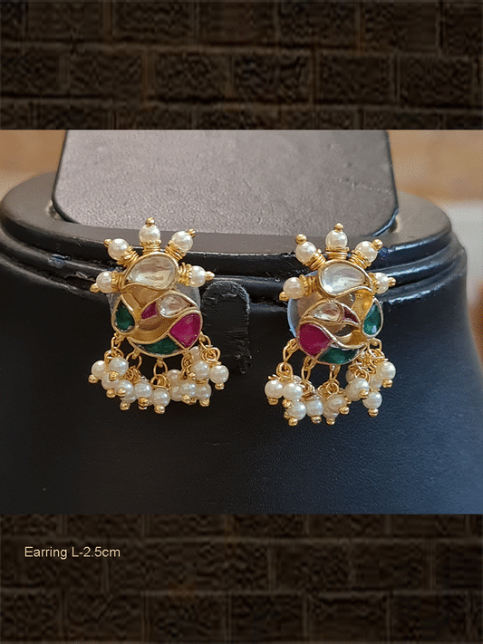Small peacock design kundan earrings with hanging pearl beads and pearls on the crown