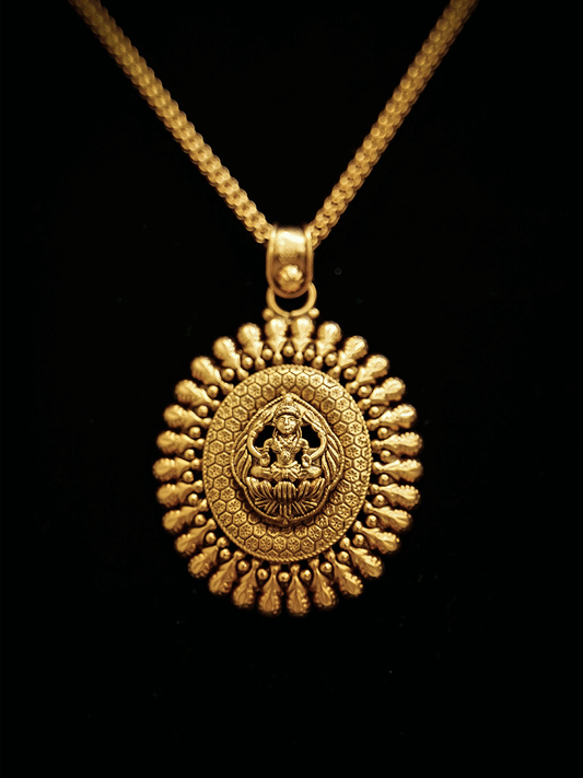 Oval laxmiji pendant set in chain with laxmiji studs