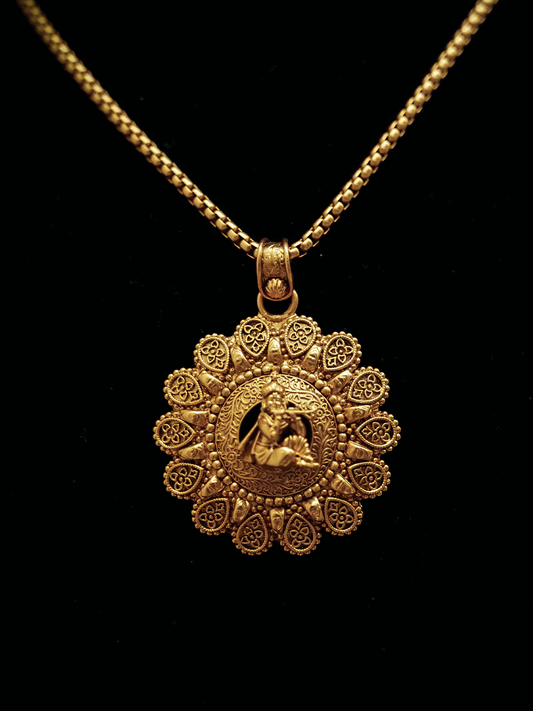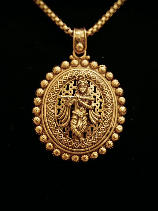 Oval gold bead lace pendant with Krishna ji motif set