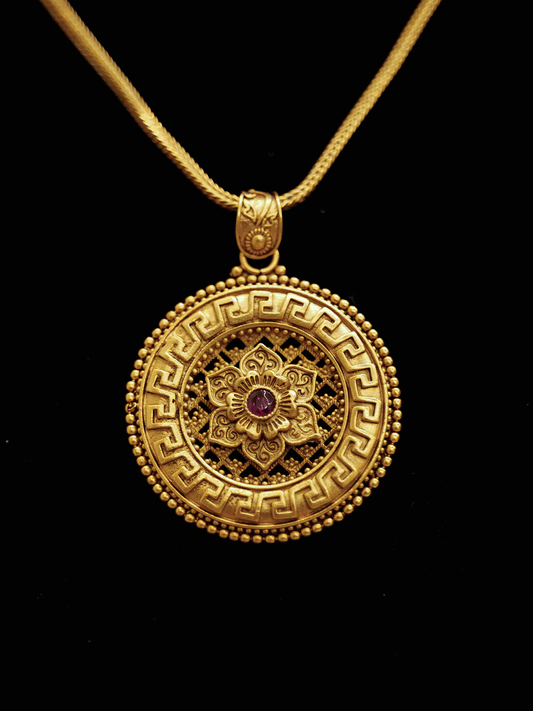 Self design circular pendant set with flower in the center