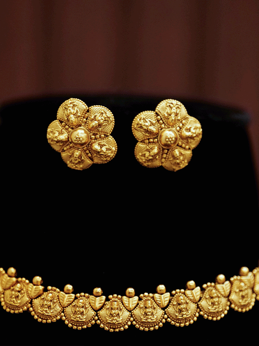 Laxmiji motif's on leaf design gold finish set