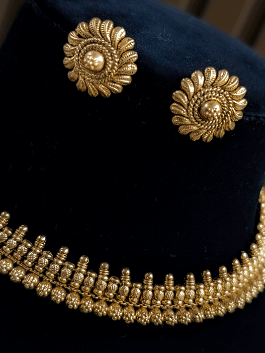 Oval and leaf design rajputi choker with flower on mesh design set