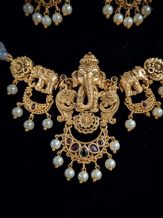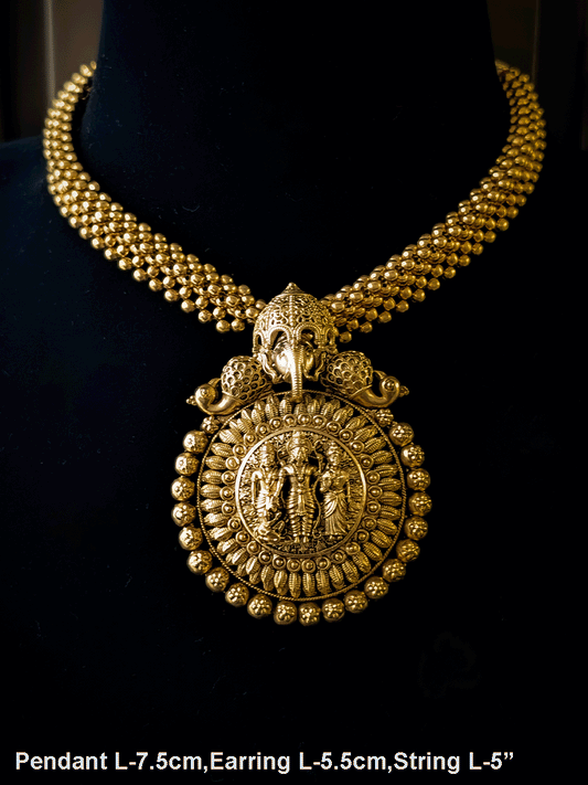 Ganpatiji center with elephant side design set with cheed strings