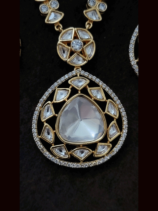 Triangular uncut polki with AD detailing classy set