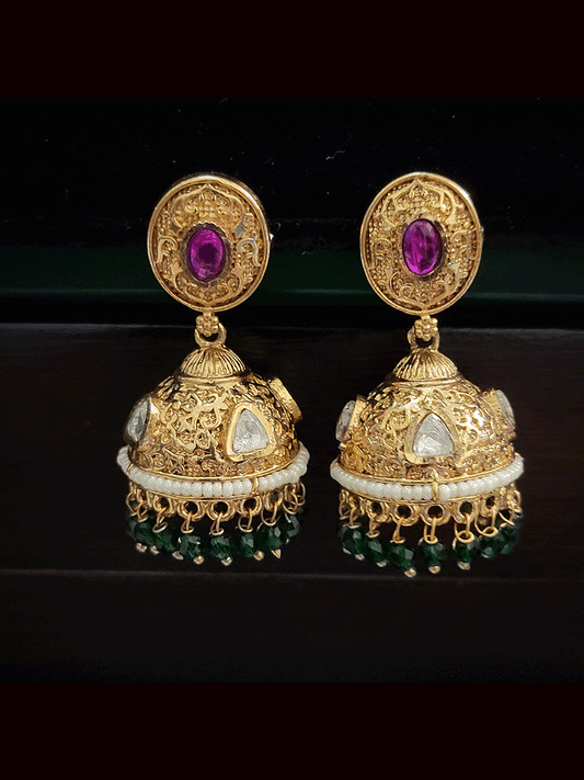 5 inch string round pendant with flower design AD,green and ruby stones studded set