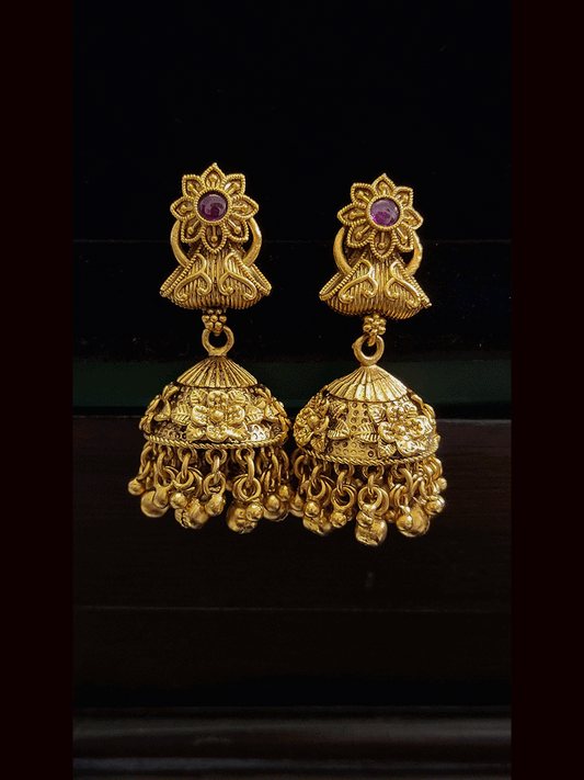 Ruby stone tukdi drop chik set with flower design top