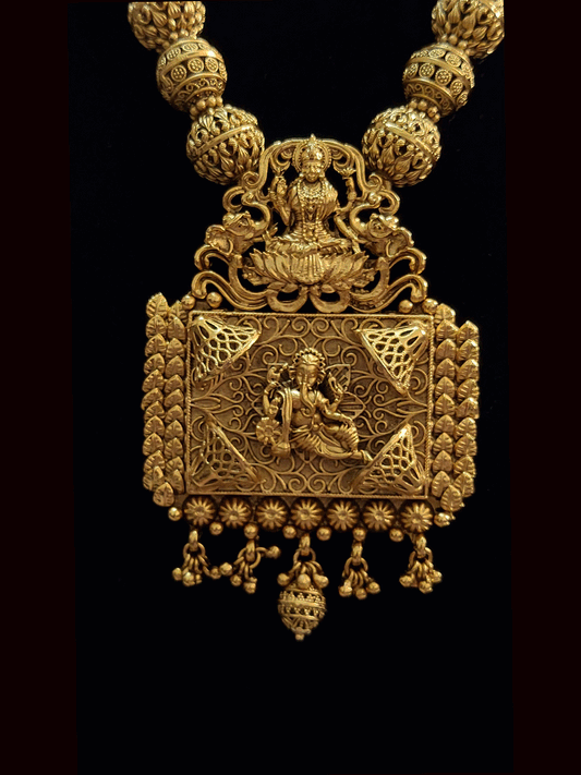 Matar bead string ganpatiji and laxmiji motif rectangular pendant set