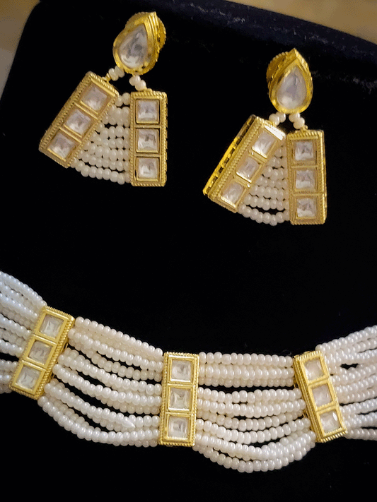 Three kundan rectangular tukdies in multiple beaded strings set