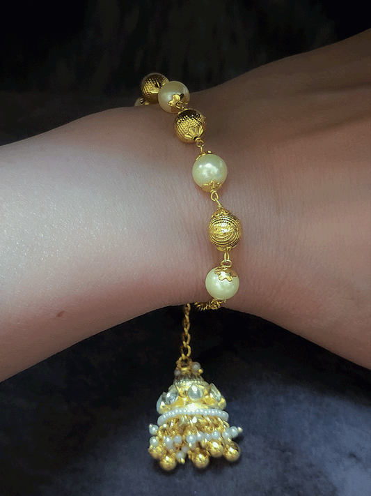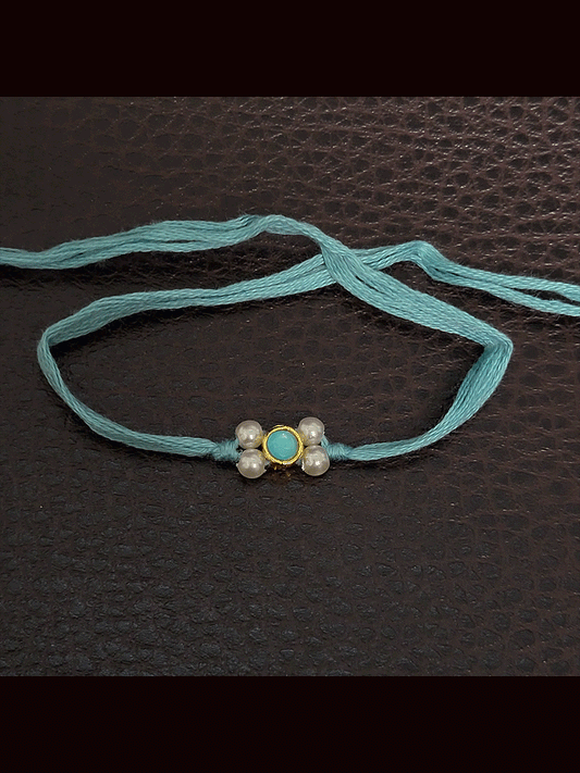 Alternate pearl and gold bead sister and bhabhi rakhi with hanging kundan jhoomki