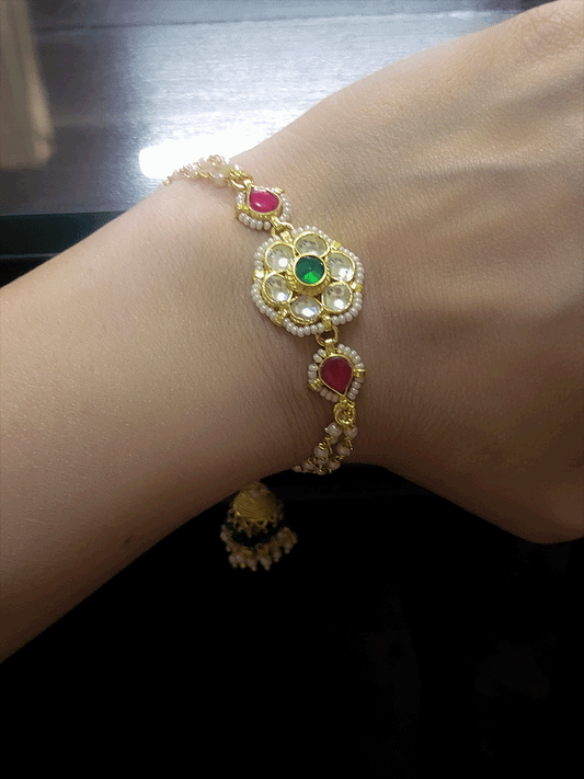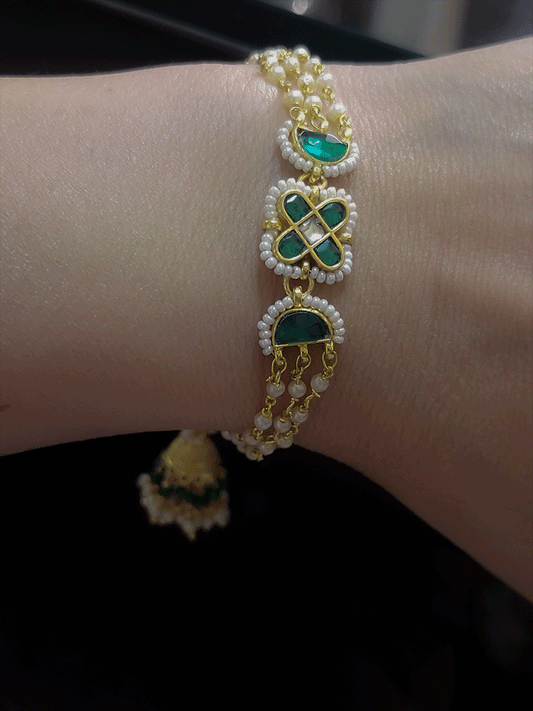 Pacchi kundan flower with side pearl strings with jhoomki hanging sister and bhabhi rakhi