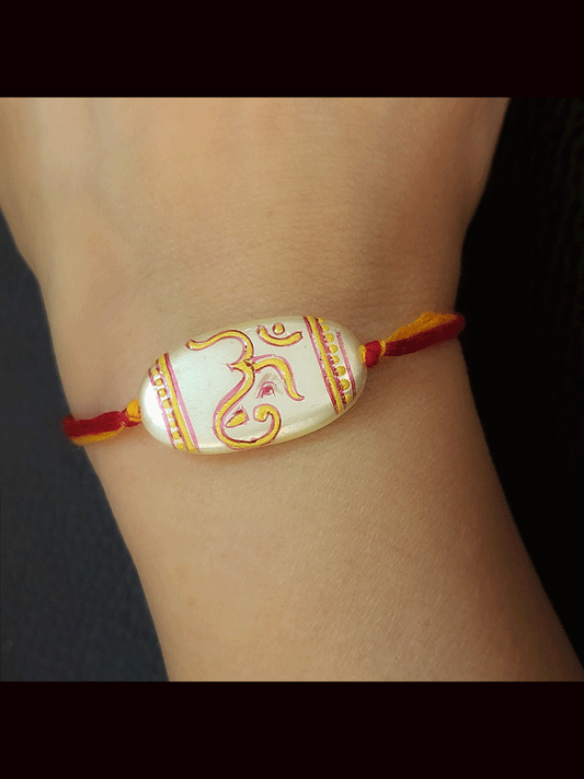 Oval shaped coloured enamel bhai bhabhi rakhi