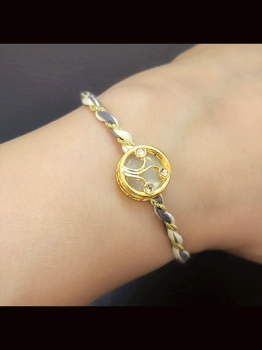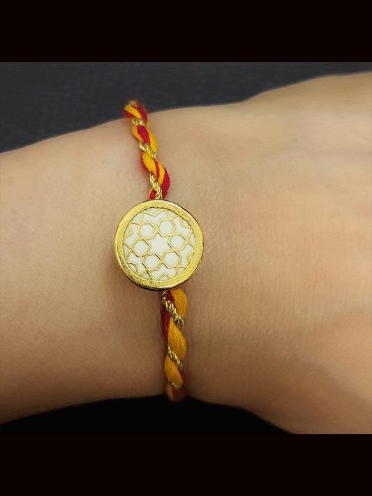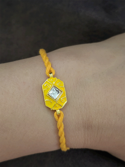 Circular kundan and enamel work bhai bhabhi rakhi set