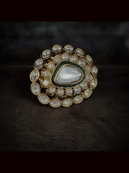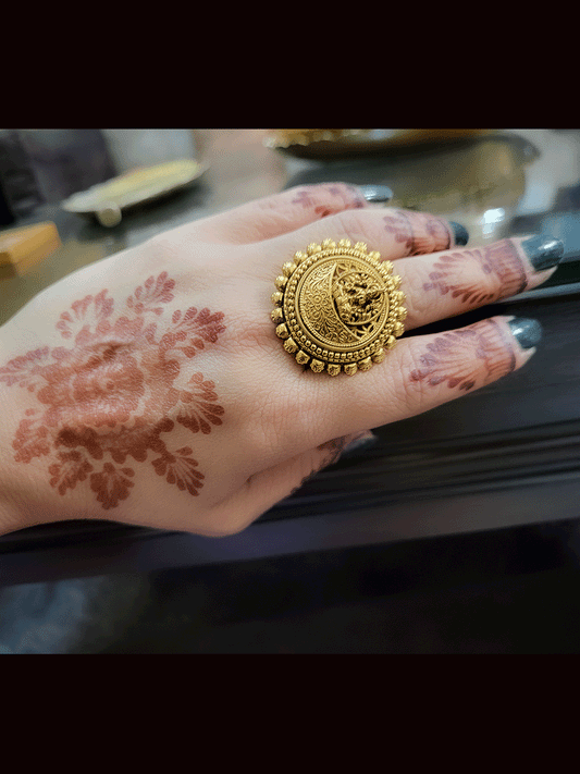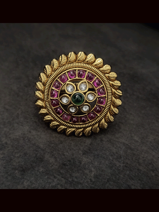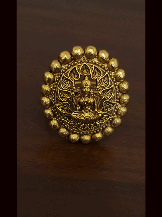 Oval laxmiji adjustable ring with leaf design and gold bead lace