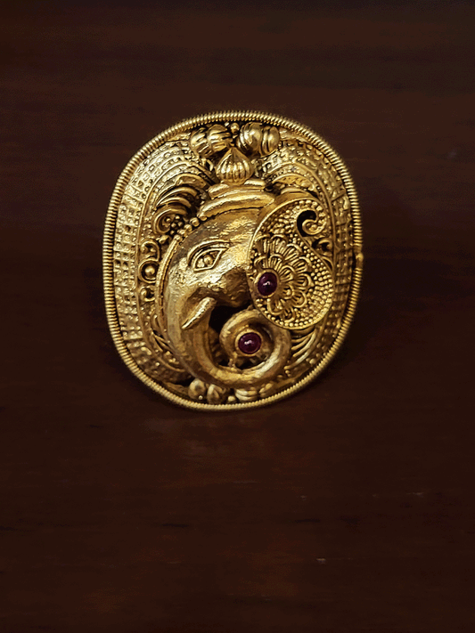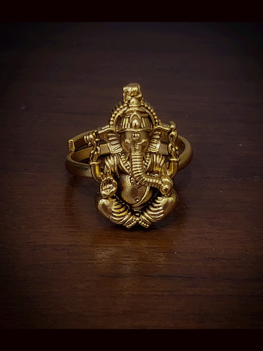 Ganpatiji face self design oval 3.5cm long adjustable ring