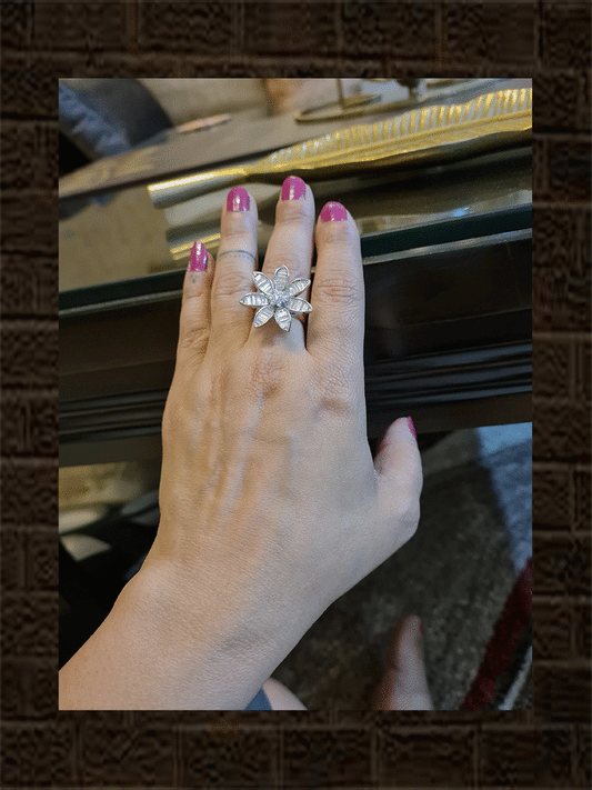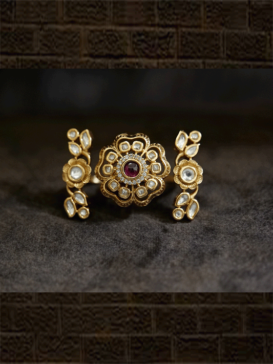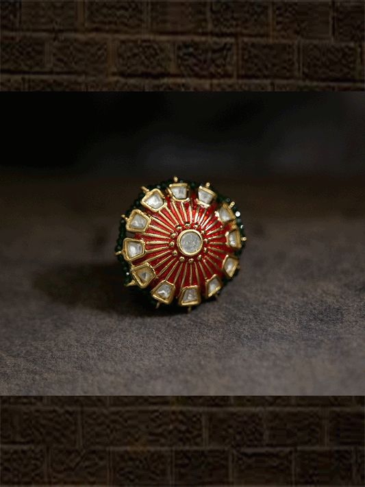 Ferozi enamel flower with ruby stone center design openable kundan ring