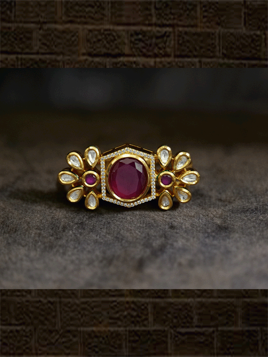 Laxmiji design adjustable ring with ruby stone( ring L-2inch)