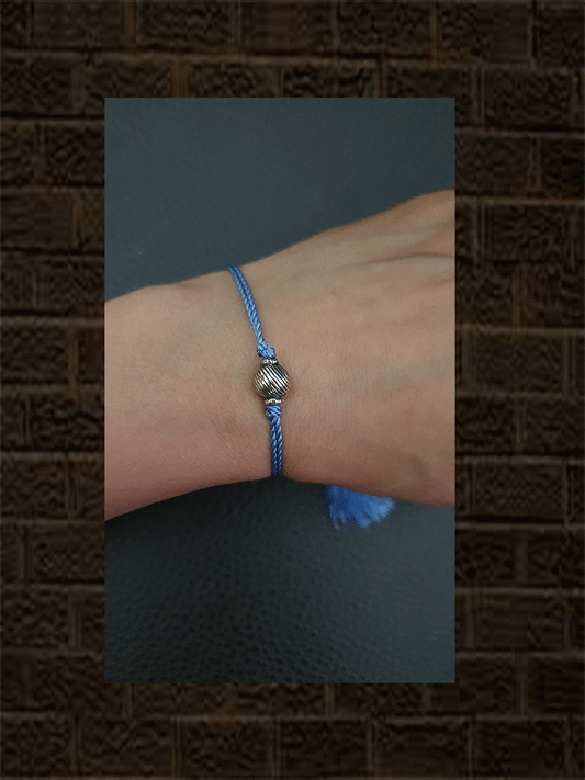 Silver finish Om bead with six shaded beads classy dori rakhi