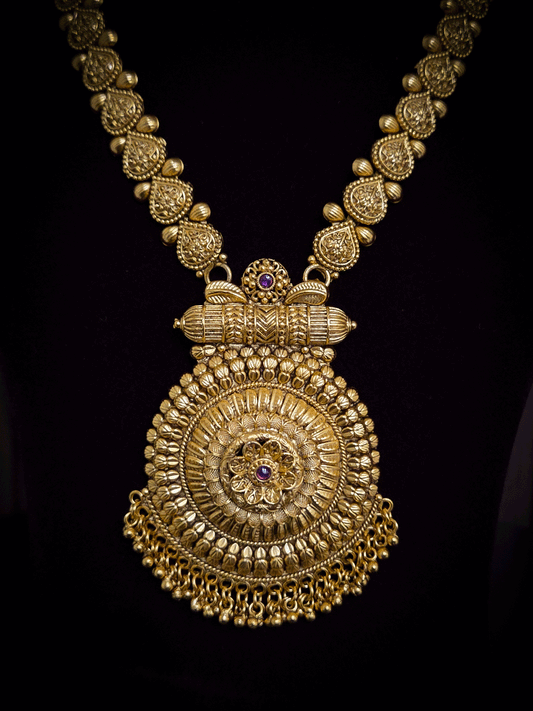 2 cm broad chain with gold bead and leaf design 11 inch long set