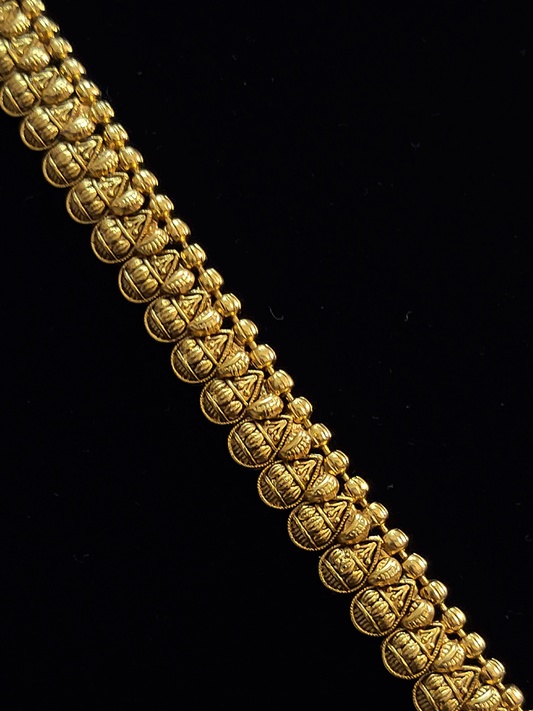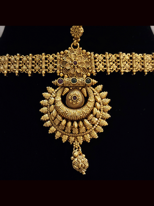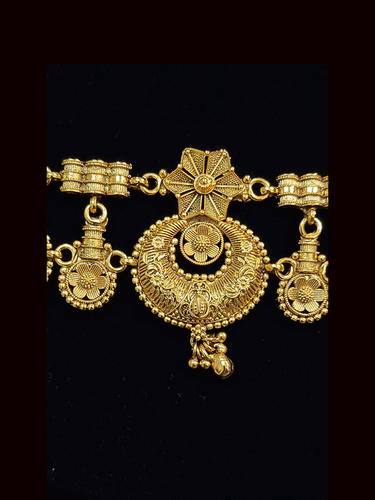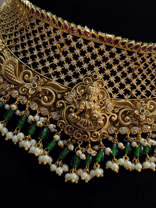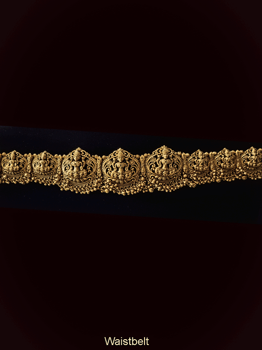 Laxmiji with side intricate design 4.5cm broad waistbelt with gold bead hangings