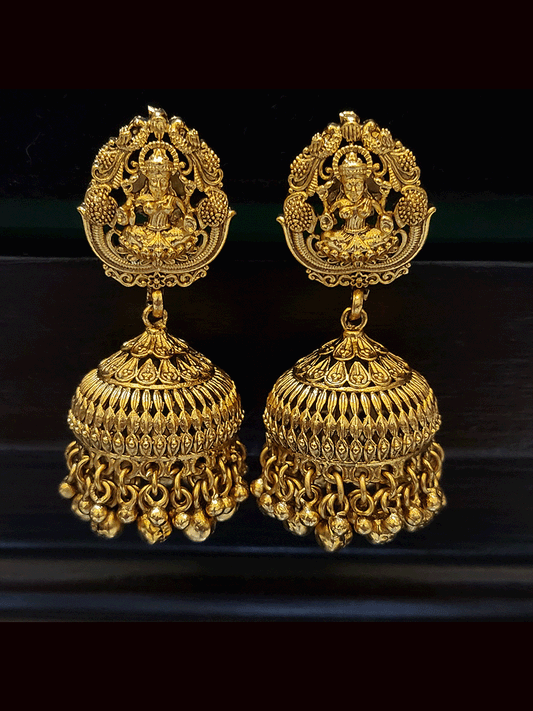 Laxmiji with peacock top ghunghru hangings in pendant(8cm) set with peacock design 10 inch long string