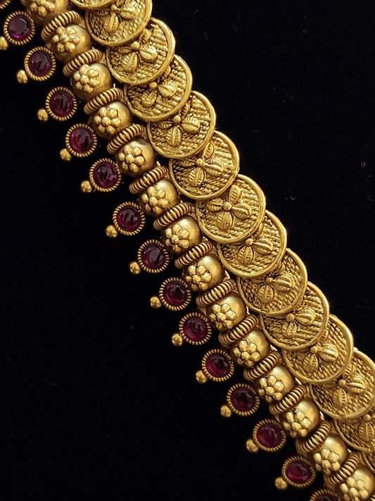 4cm broad oval ruby stones studded tukdies waistbelt with leaf tukdi hangings