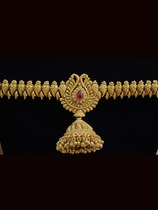 Leaf design chain with jhoomki design in center 1.5cm broad waistbelt
