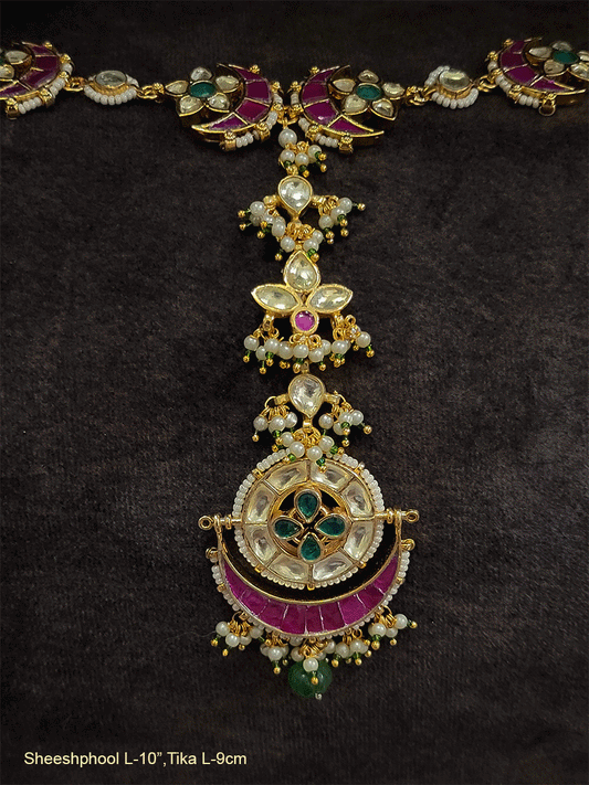 Ruby and green flower and half moon tukdies pacchi kundan sheeshphool