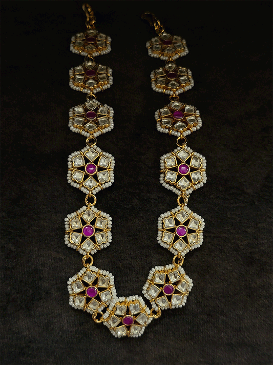 Ruby,green and kundan sheeshphool with rectangular kundan connectors