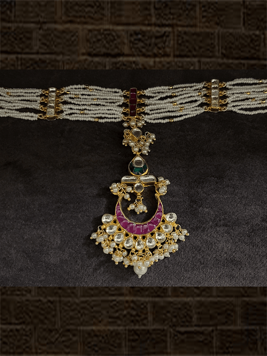 3.5cm broad kundan anklets with 12 pearl strings pirohi