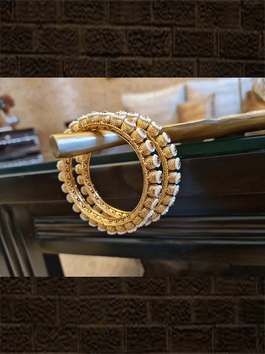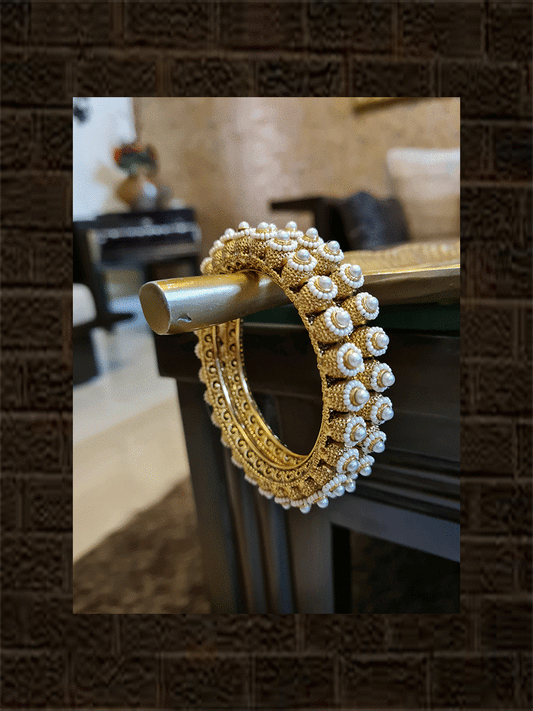 Set of two mehandi polish polki pearl pirohi kada's with hanging jhoomki