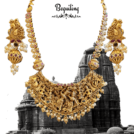 मोर और नृत्यांगना के साथ ब्रॉड रूबी स्टोन एम्बेडेड कृष्णाजी मोटिफ जटिल नक्काशी सेट