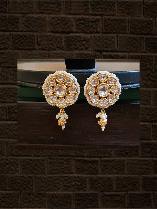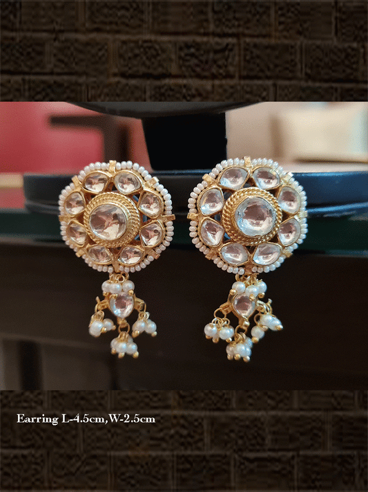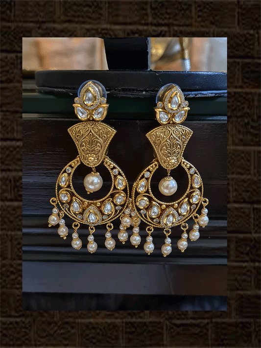 सेल्फ गोल्ड डिजाइन के साथ एंटीक फिनिश कुंदन और AD