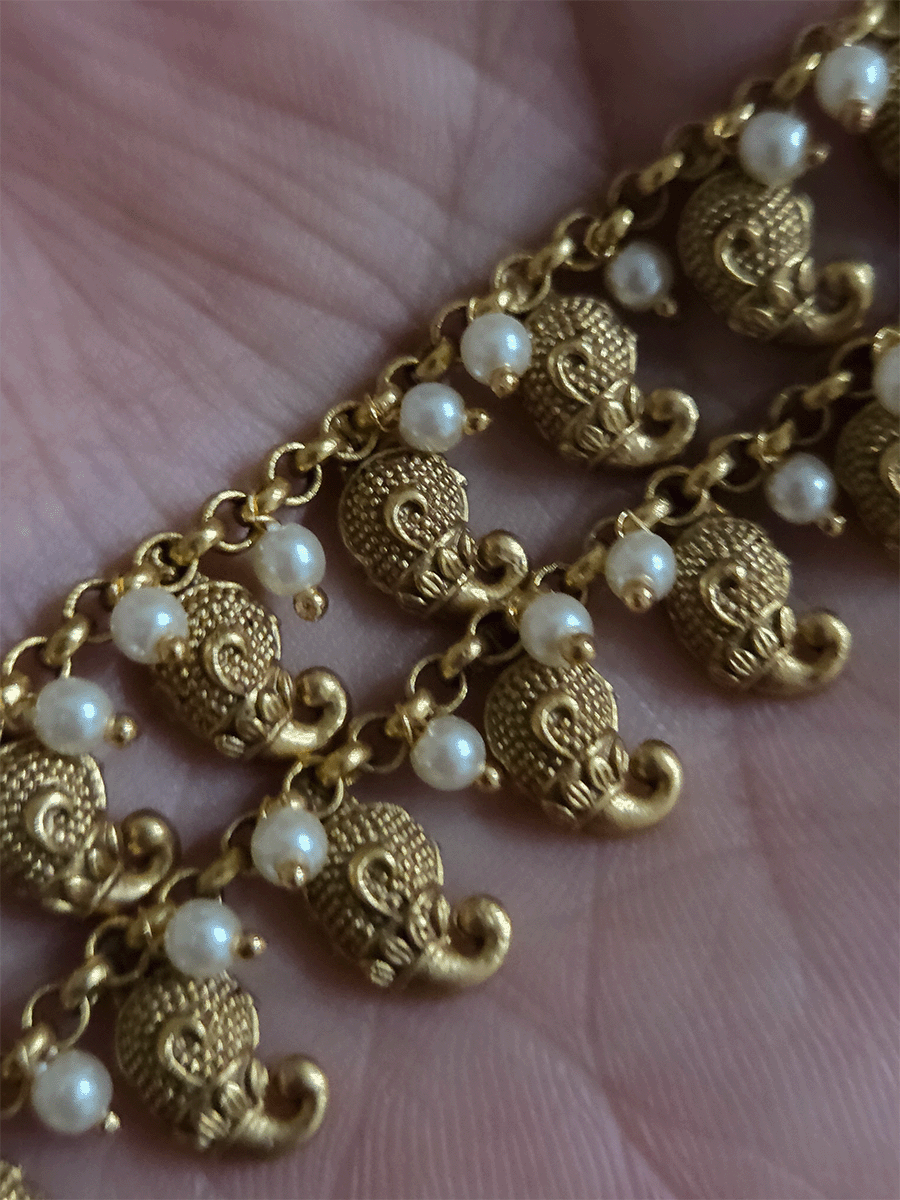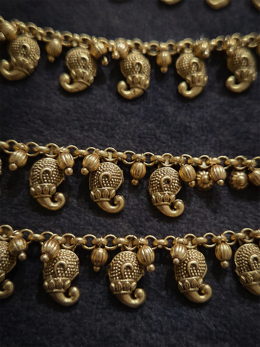 Elevate your ear styling with these sophisticated two-layer ear chains, featuring intricate paisley motifs paired with carefully selected beads. The cascading design creates dimensional movement while maintaining refined elegance. Each layer is thoughtfully constructed to drape gracefully from the ear, offering a contemporary take on traditional jewelry craftsmanship. Perfect for those who appreciate detailed metalwork and layered aesthetics, these chains transition seamlessly from everyday wear to special occasions. The combination of paisley detailing and bead embellishments adds visual interest without overwhelming the silhouette.