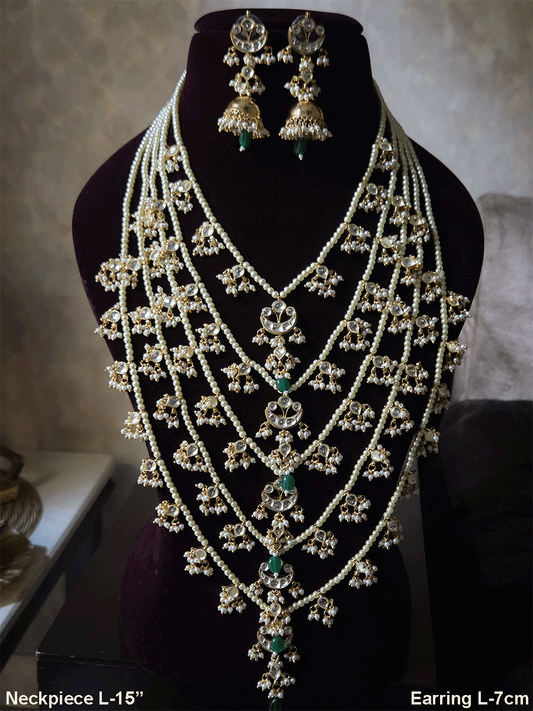 15 inch long five pearl layers paachi kundan tukdies traditional design set